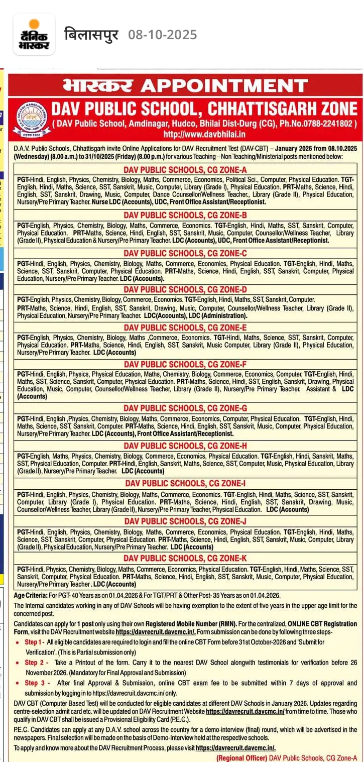DAV College Managing Committee, New Delhi took over all Government Model Schools of Chhattisgarh to run them with the name DAV MUKHYAMANTRI PUBLIC SCHOOL , aiming to make the Students of remote area access to Quality Education.